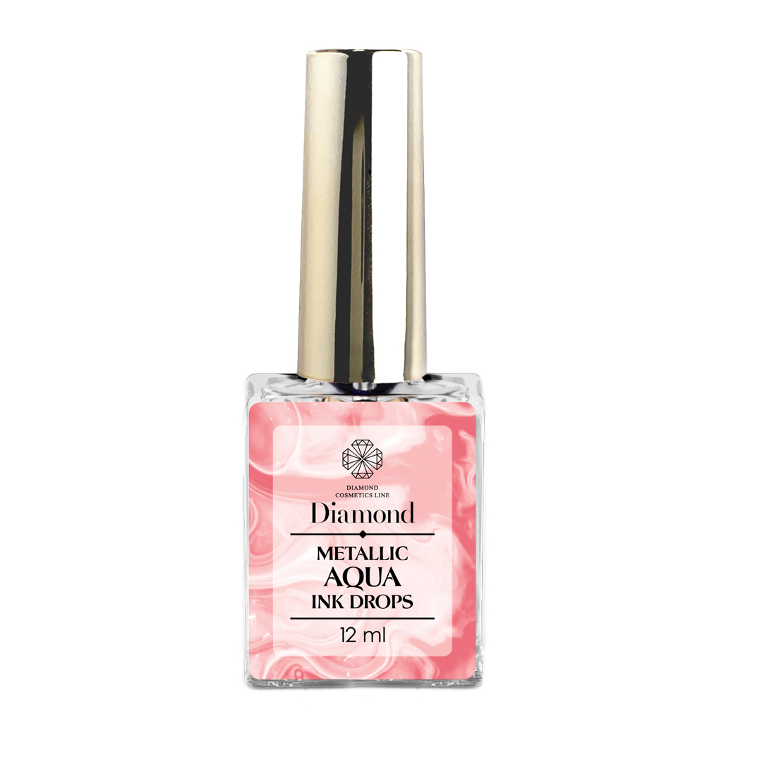 Gotas de acuarela metalizadas para nail art. Aplicación: Sobre el barniz de gel polimerizado blanco o pintura de color, aplicamos una capa superior mate, la polimerizamos y repartimos gotas de acuarela por goteo encima, esto lo hacemos con la ayuda de acetona (mojando el pincel en acetona). Aplicamos la parte superior sobre el diseño resultante.
