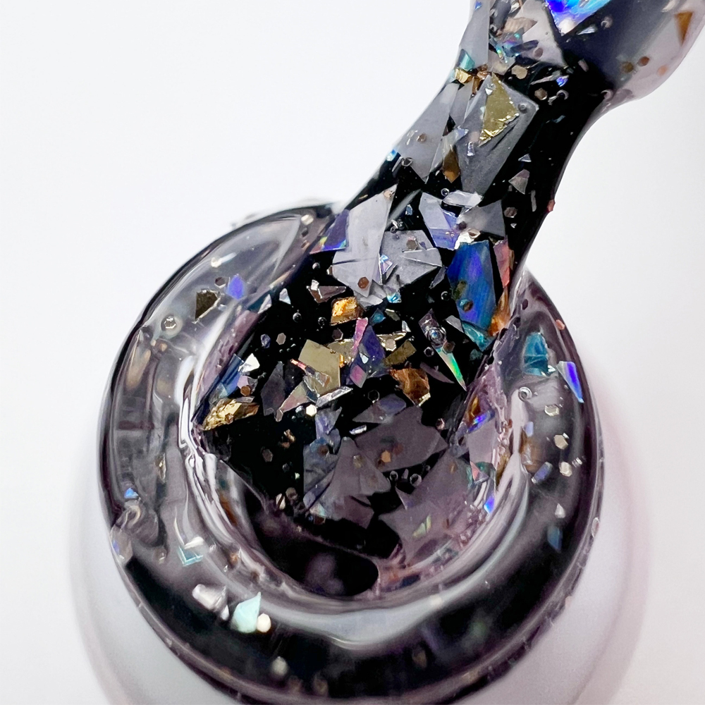 Esmalte en gel «Bright Star» con partículas de lámina de foil multicolor, se aplica en 1 o 2 capas. Polimerización: LED 60 seg. / UV 2 min. / CCFL 90 seg. Tamaño: 6ml. El color del esmalte en gel de la foto es solo una ayuda visual. Según el monitor, la pantalla del teléfono o la iluminación general, el color real puede variar.