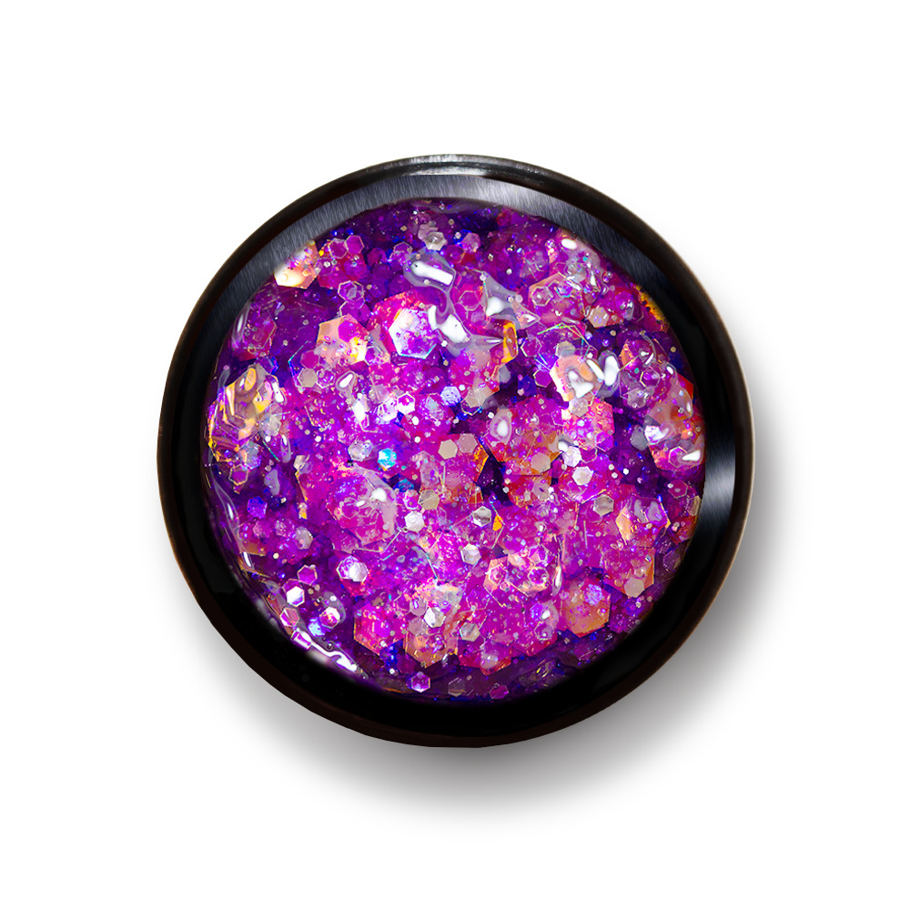 Gel brillante con purpurina de varios tamaños. El gel está destinado tanto a las uñas naturales como a las recubiertas de gel duro. Tamaño: 8ml. Polimerización UV 2 min. / LED 60 seg. / CCFL 90 seg.