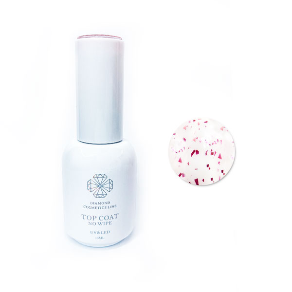 Top de alto brillo con decoración de foil incorporada de densidad media. Gran resistencia a los arañazos. Apto para cualquier sistema de esmaltado semipermanente, gel, polygel y acrílico. Sin capa de dispersión. Polimerizacion: LED – 120S. UV – 4min. CCFL – 120S.