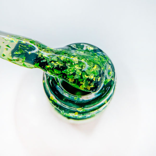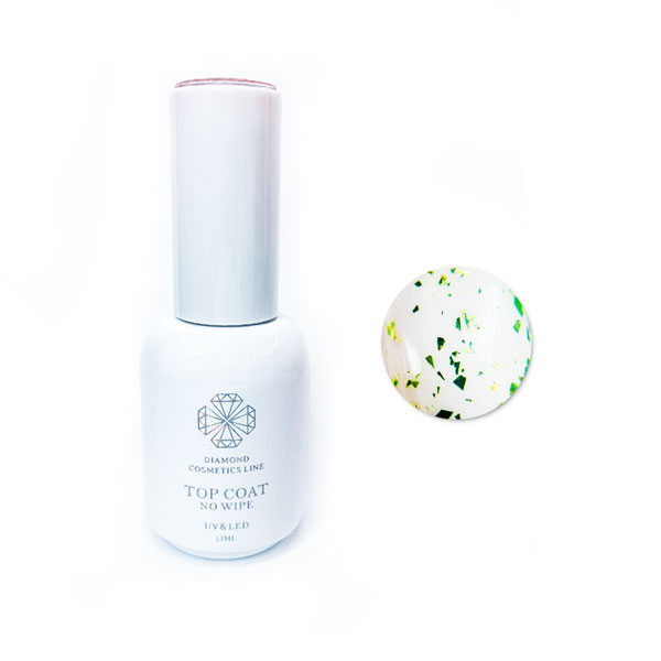Top de alto brillo con decoración de foil incorporada de densidad media. Gran resistencia a los arañazos. Apto para cualquier sistema de esmaltado semipermanente, gel, polygel y acrílico. Sin capa de dispersión. Polimerizacion: LED – 120S. UV – 4min. CCFL – 120S.